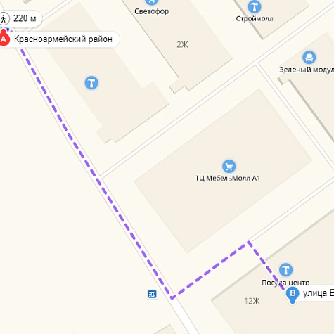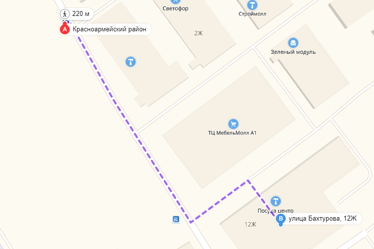 До остановки «Строймолл» на маршрутном такси №43Б, далее пешком 2 мин.