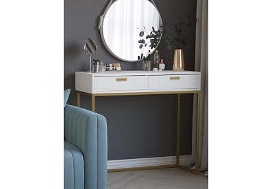 Консоль Драйм К02 PUSH-OPEN с выдвижными ящиками Ясень браш белый/золото МДФ