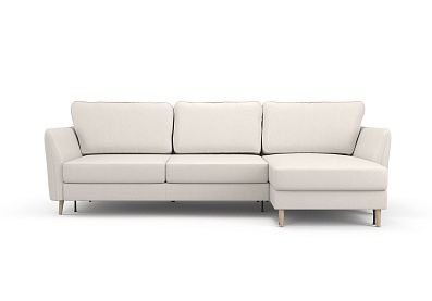 Диван АННИКА NEW 3-х местный с оттоманкой и светлыми опорами Серо-бежевый (Woolly 910), Рогожка