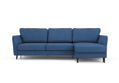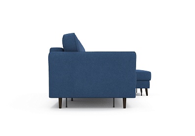 Диван АННИКА NEW 3-х местный с оттоманкой и темными опорами Темно-синий (Woolly 783) , Рогожка