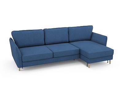 Диван АННИКА NEW 3-х местный с оттоманкой и светлыми опорами Темно-синий (Woolly 783) , Рогожка