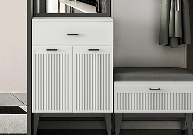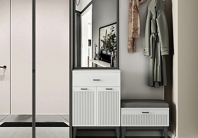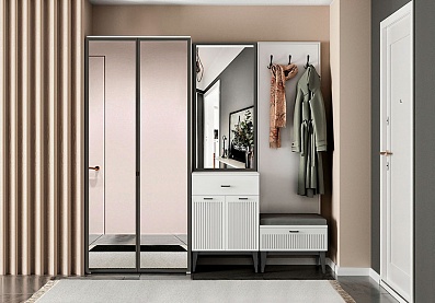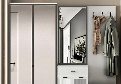 Узкие маленькие прихожие – помещения, в которых чаще всего используют востребованный стиль минимализм. Главная отличительная особенность этих комнат заключается в отсутствии лишних деталей и элементов, которые лишены функциональности и загромождают интерьер. Рекомендовано полностью отказаться от вешалок открытого типа, глубина которых негативно сказывается на сохранении свободного пространства.