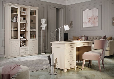 Шкаф Чарли с витриной (левый, со шпонированными полками) Шафран