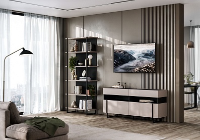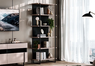 Стеллаж Милагро с полками Кашемир серый, Черный графит, Черный