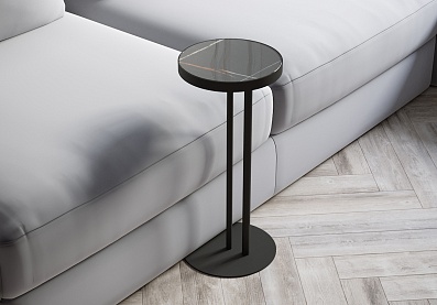 Стол журнальный Брун Серый мрамор, Черный МДФ