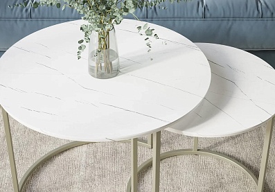 Комплект журнальных столов Лесло Белый мрамор, Титан МДФ