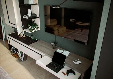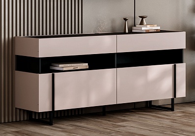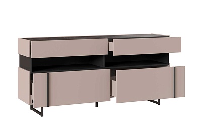 Тумба Милагро под телевизор с выдвижными ящиками Кашемир серый, Камень Пьетра, Черный графит
