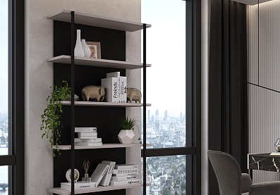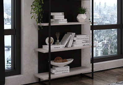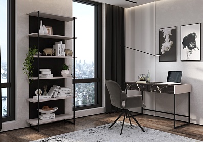Стеллаж Милагро с полками Кашемир серый, Черный графит, Черный