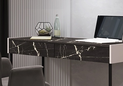 Туалетный стол с выдвижным ящиком Милагро Кашемир серый, Камень Пьетра, Черный ЛДСП
