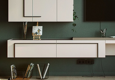 Тумба Милагро настенная с выдвижными ящиками Кашемир серый, Камень Пьетра Гриджиа черный