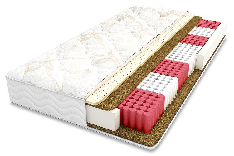 - Матрас Испания содержит в себе кокосовое волокно, которое равномерно распределяет нагрузку на пружинный блок, и увеличенный слой латекса, который идеально подойдет для людей, предпочитающих мягкое спальное место;