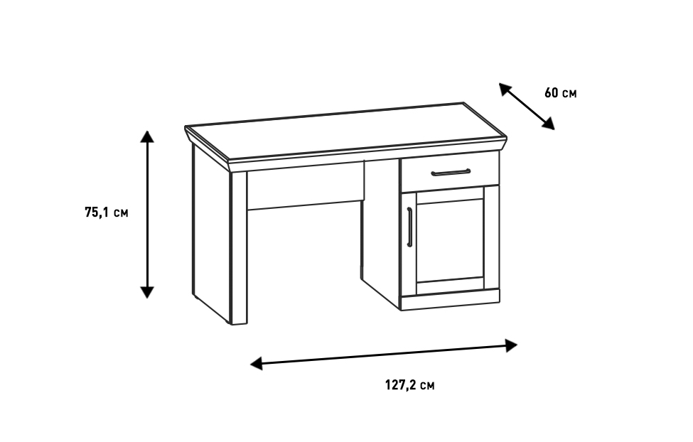 - Стол письменный с одной тумбой и рабочим местом для сидения слева;