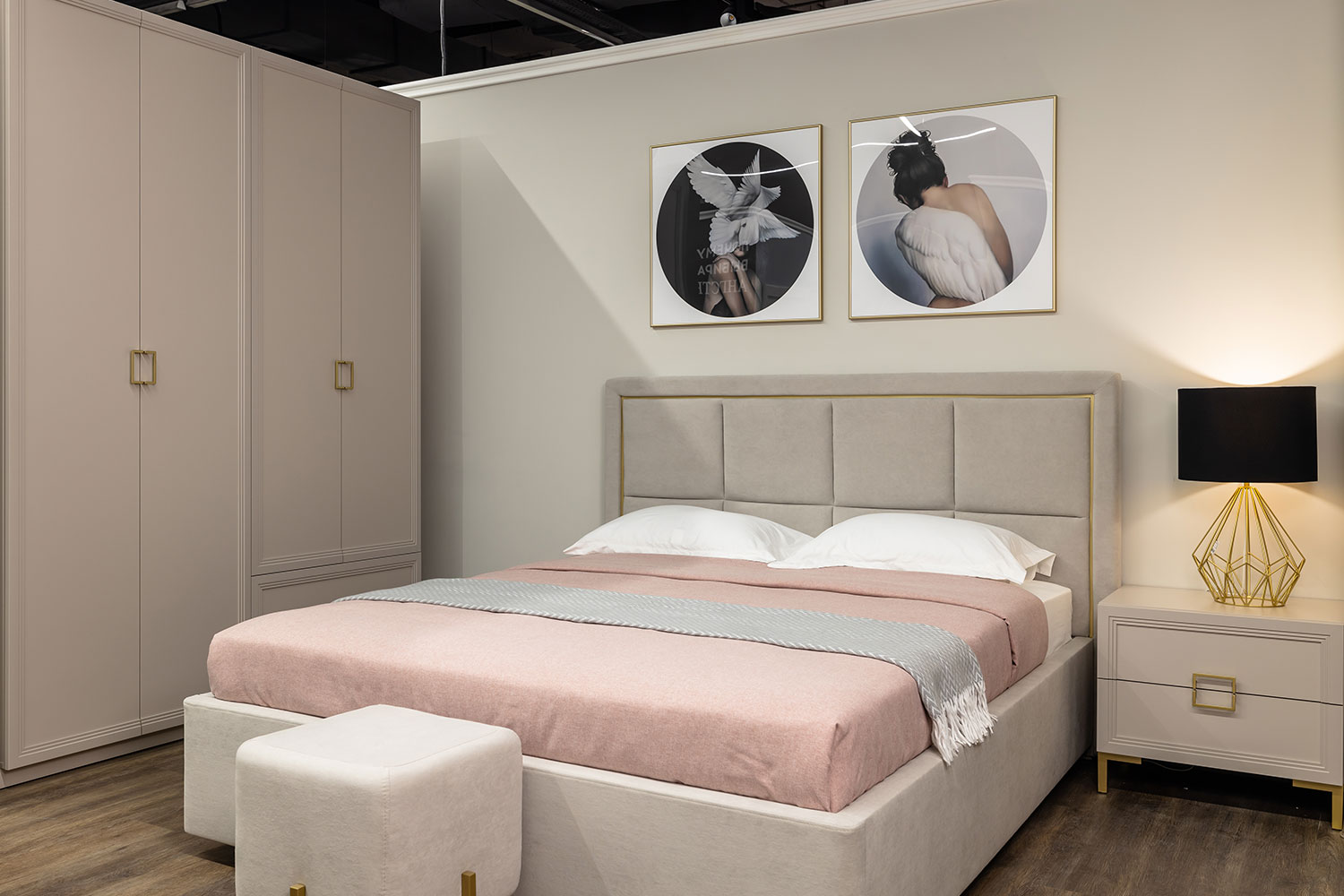 - Спальня Дольче выполнена в стиле эклектики, а также соединяет в себе стиль ар-деко в современном прочтении и минимализм. К строгим формам и безупречной геометрии добавлена гладкая текстура кашемира, позволяющая смягчить декор и подарить коллекции шлейф тонкой роскоши с золотыми вставками;