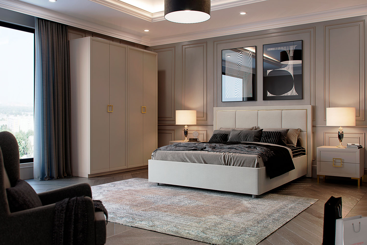 - Вы можете самостоятельно выбрать размер и комплектацию шкафов и кровати.