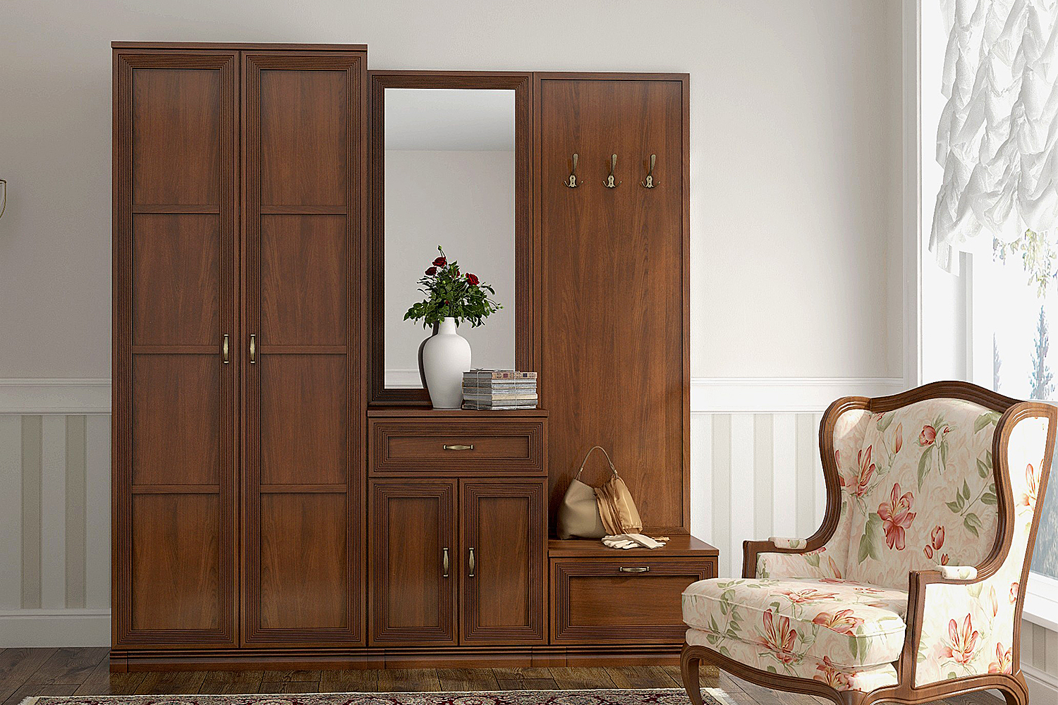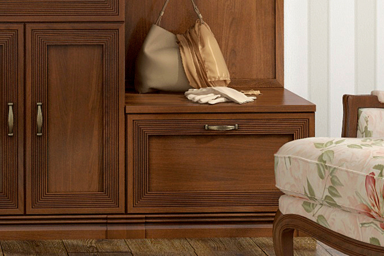 - Адажио — образец сдержанности и изящества, стиля и элегантности. Такая мебель подойдет не только к классическим интерьерам, но и к прихожим в стилях фьюжн, контемпорари и эклектика;