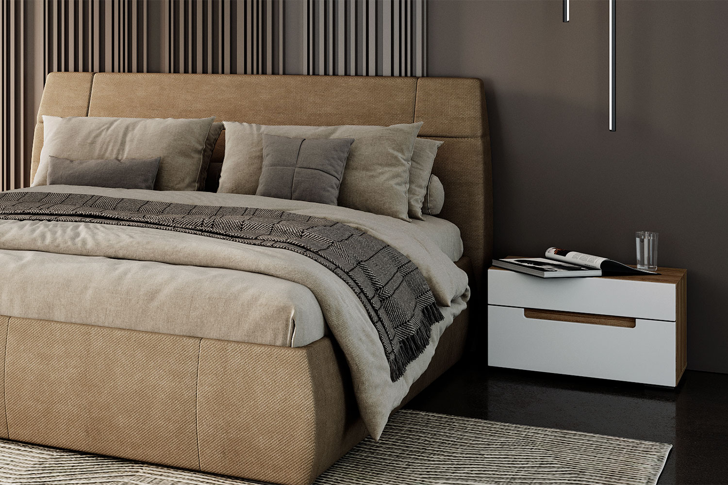 - Спальня в современном стиле. Такая мебель универсальна и подойдет интерьерам в стилях эко, минимализм и лофт (в его более «легком» варианте);