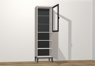 Боковые царги: ЛДСП 2,2 см, передняя панель — МДФ с декоративной фрезеровкой в виде вертикальных полос и окутана плёнкой ПВХ;