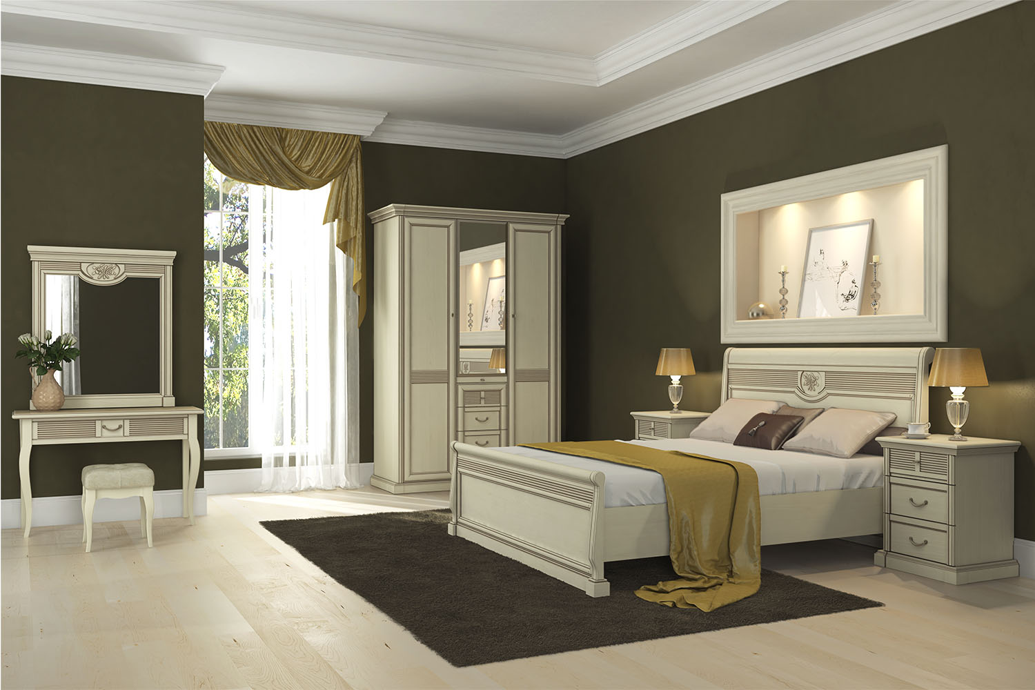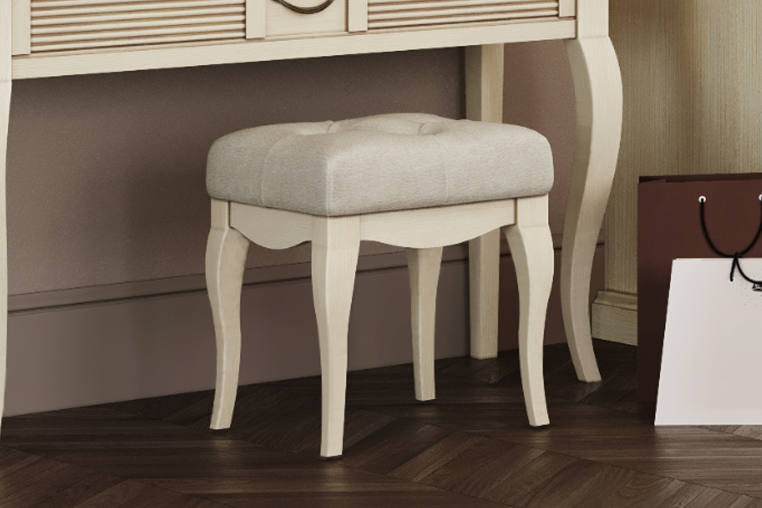 Изящная мебель из коллекции «Изотта» выдержана в традициях английской классики — мягкое сиденье украшено каретной стяжкой, каркас декорирован гуськами, присутствуют фигурные ножки. Элегантная банкетка также подойдет для оформления спальни в стиле модерн или прованс, также используется в качестве дополнительного посадочного места в гостиной или прихожей.