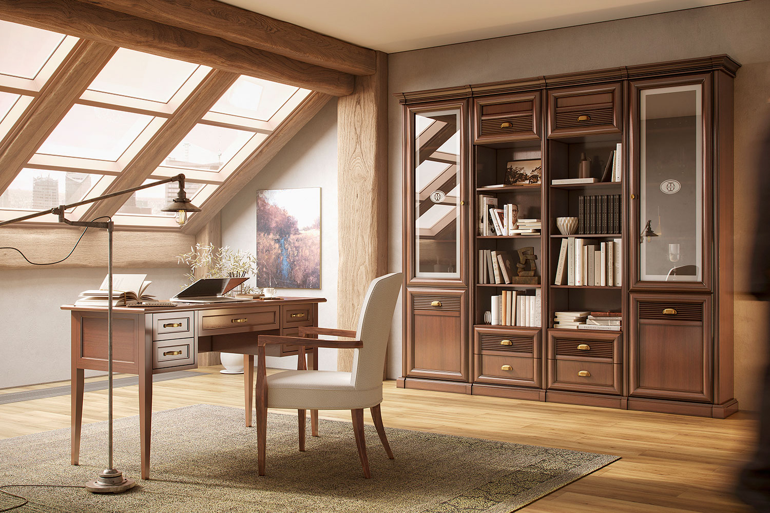 - Домашний кабинет — это место для размышлений и передачи опыта поколений. Такое положение вещей наложило отпечаток на стиль мебели для кабинетов: она всегда отличается изысканным дизайном и безупречным качеством. Коллекция Изотта — именно такая мебель;