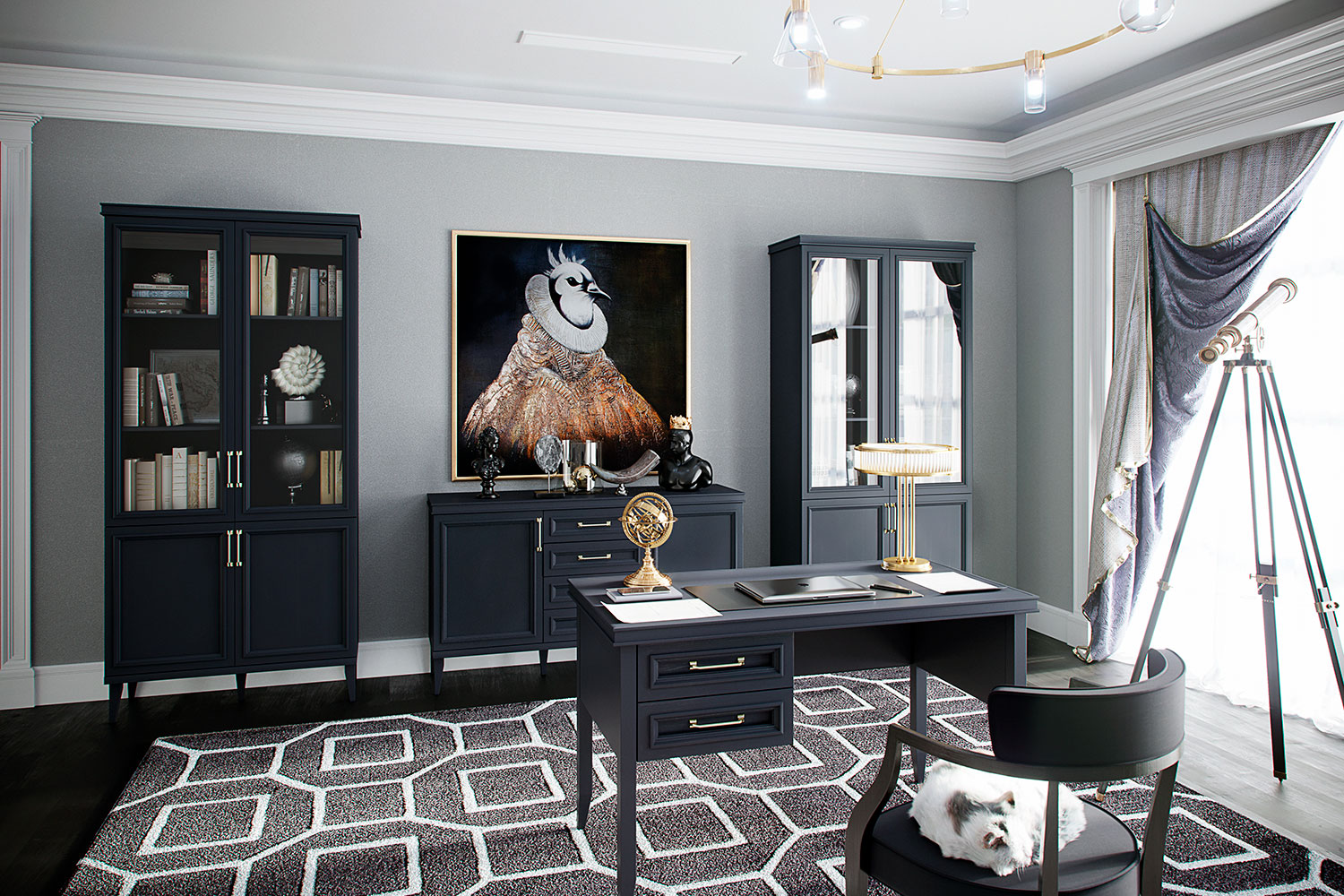 – описание: стиль английский, неоклассика, назначение для работы, для дома, цвет серый уголь, размер 78x130x65 см.