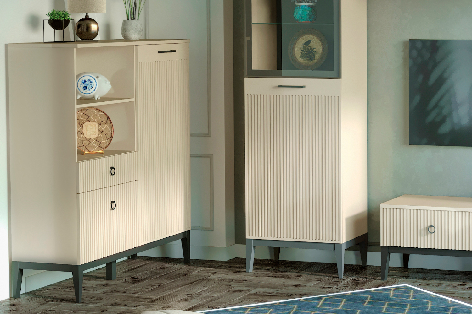 - Навесы для настенного шкафа входят в комплектацию модуля.