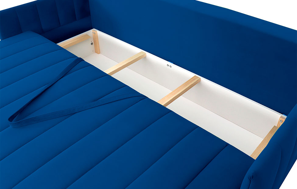 – описание: материал обивки велюр, размер спального места 150 х 192 см, цвет синий (мора синий), размер 92x200x105 см.