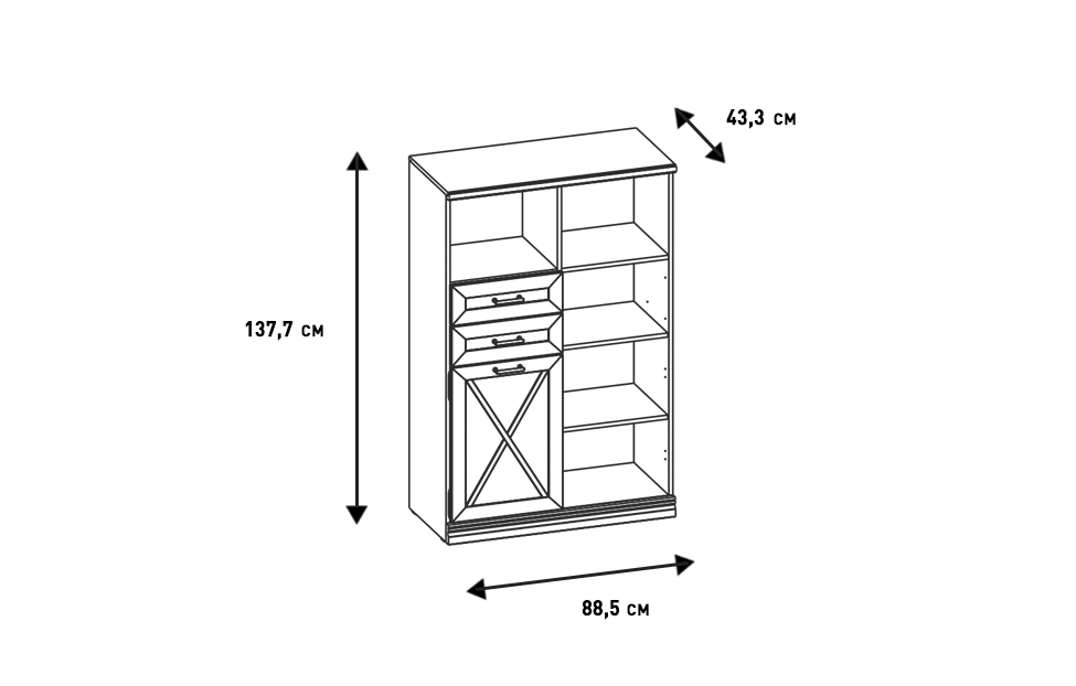 – описание: назначение для книг, для посуды, многоцелевой, стиль прованс, кантри, классический, неоклассика, размер 137.7x88.5x43.3 см, цвет блан шене.