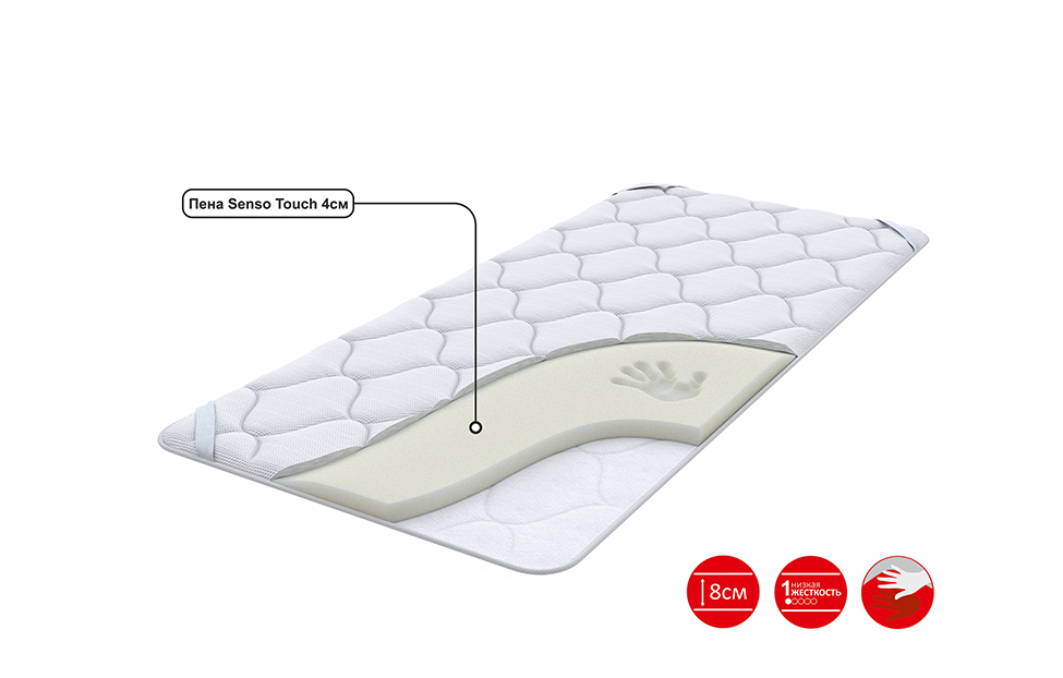 - Senso Touch идеально подстраивается под форму тела спящего, обеспечивая комфортную мягкость и температуру;