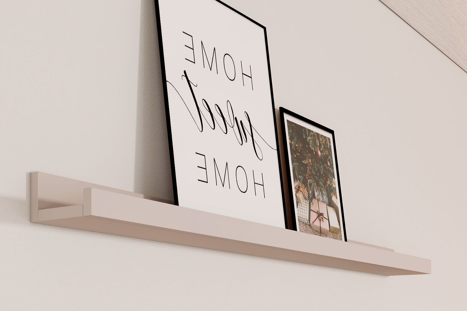 Полку можно использовать в композиции — комбинировать несколько вариантов размеров, чтобы создать настоящую галерею семейных фотографий или картин. Передний ограничительный профиль не даст соскользнуть предметам с полки.