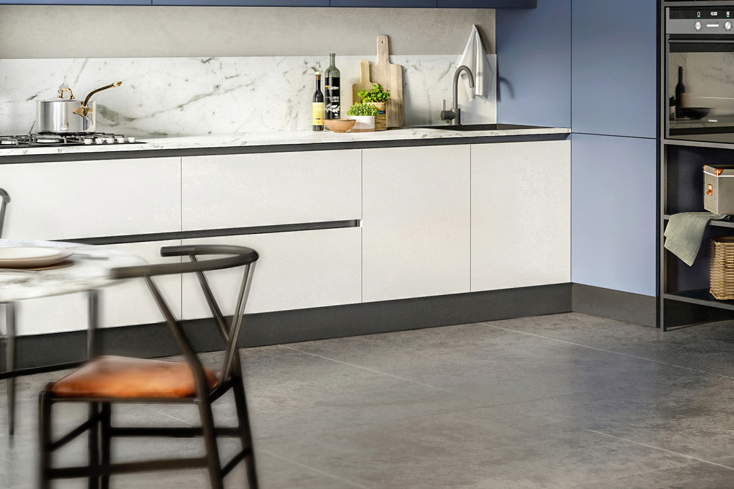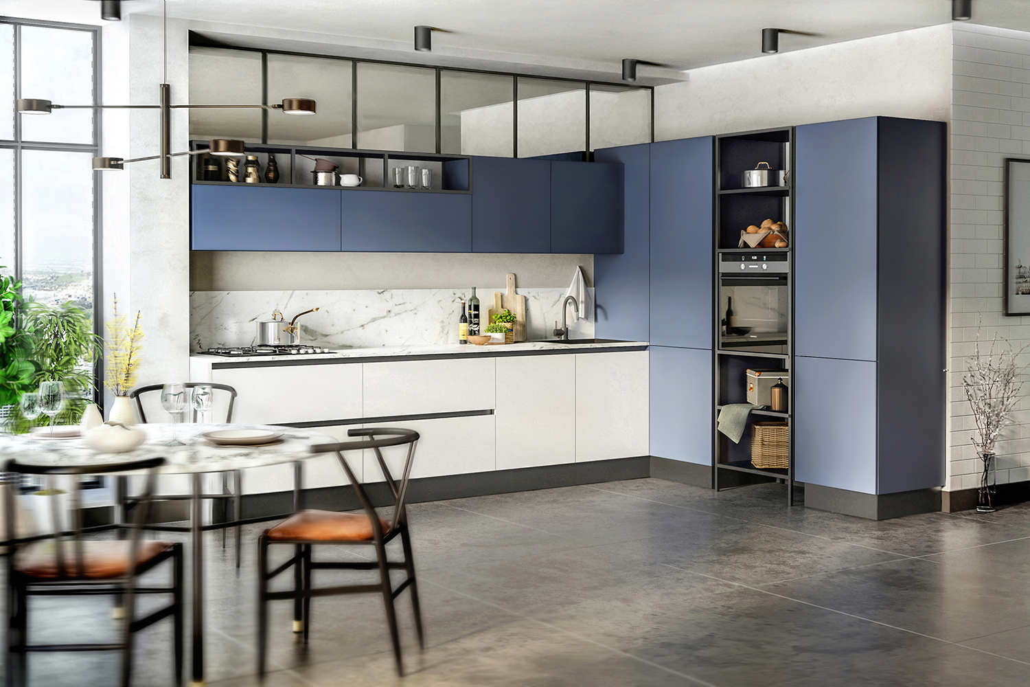 Эта модель современная, свежая и модная. Ультраматовые фасады глубоких оттенков отделаны инновационным самовосстанавливающимся покрытием. Благодаря этому покрытию можно забыть про отпечатки пальцев на фасадах.