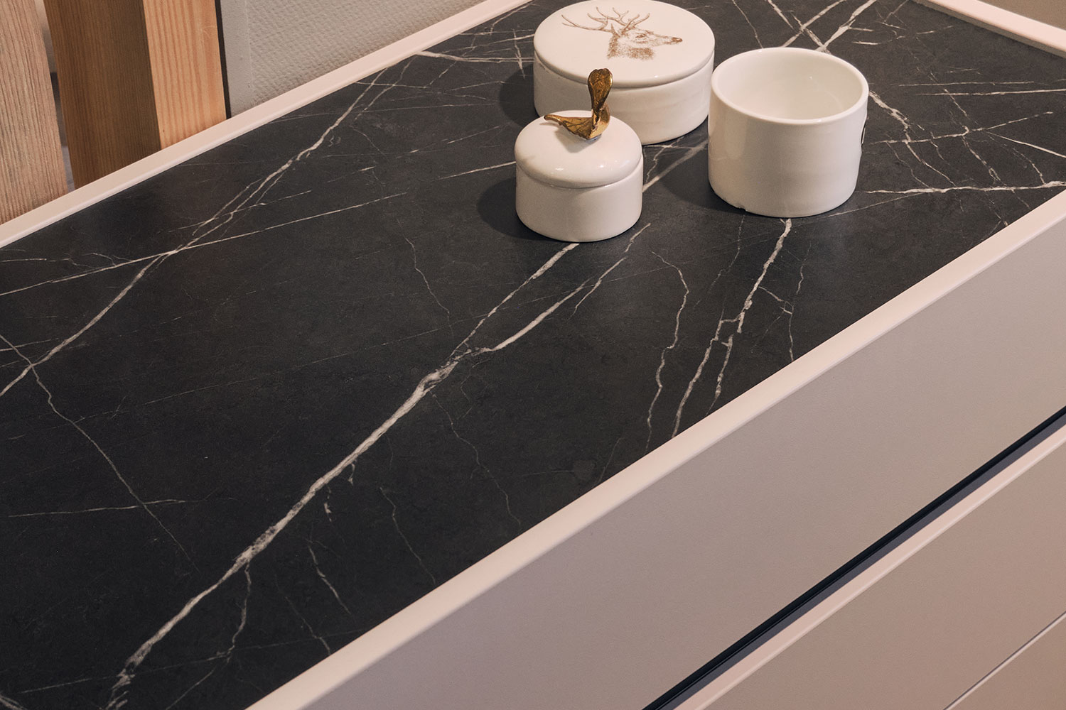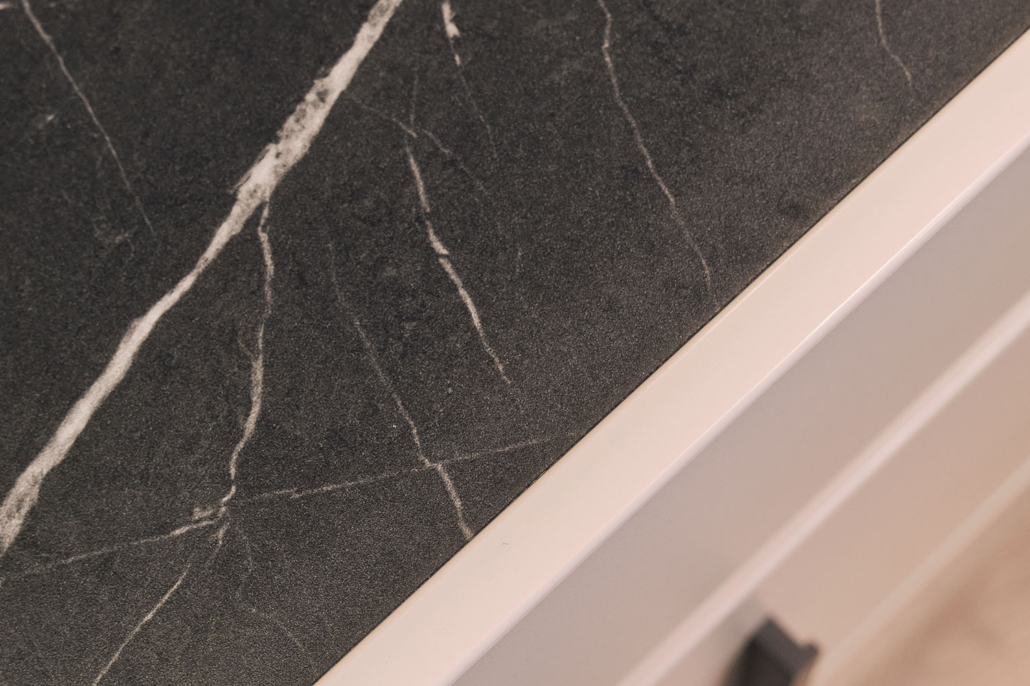 - Столешница из ЛДСП 16 мм черного цвета с имитацией рисунка мрамора;
