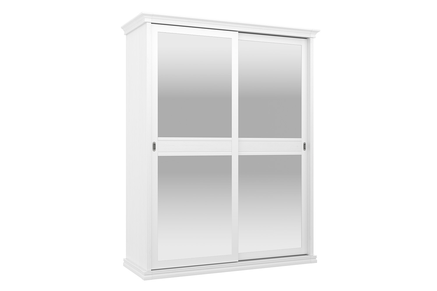 • Шкаф двустворчатый с зеркальными, раздвижными фасадами, укомплектованный полками и штангами, отдельностоящий;