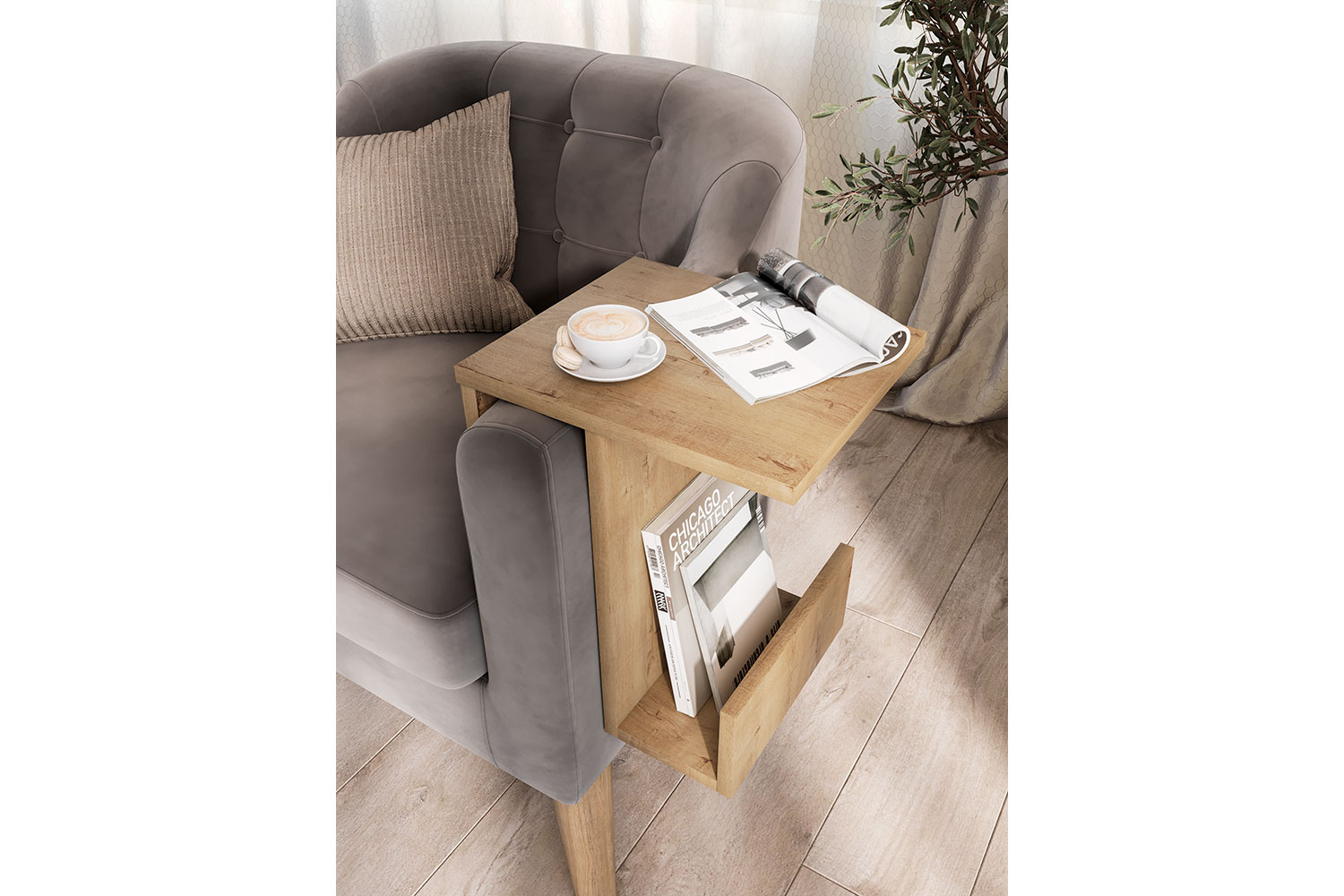 - Столик устанавливается на подлокотник мягкой мебели;