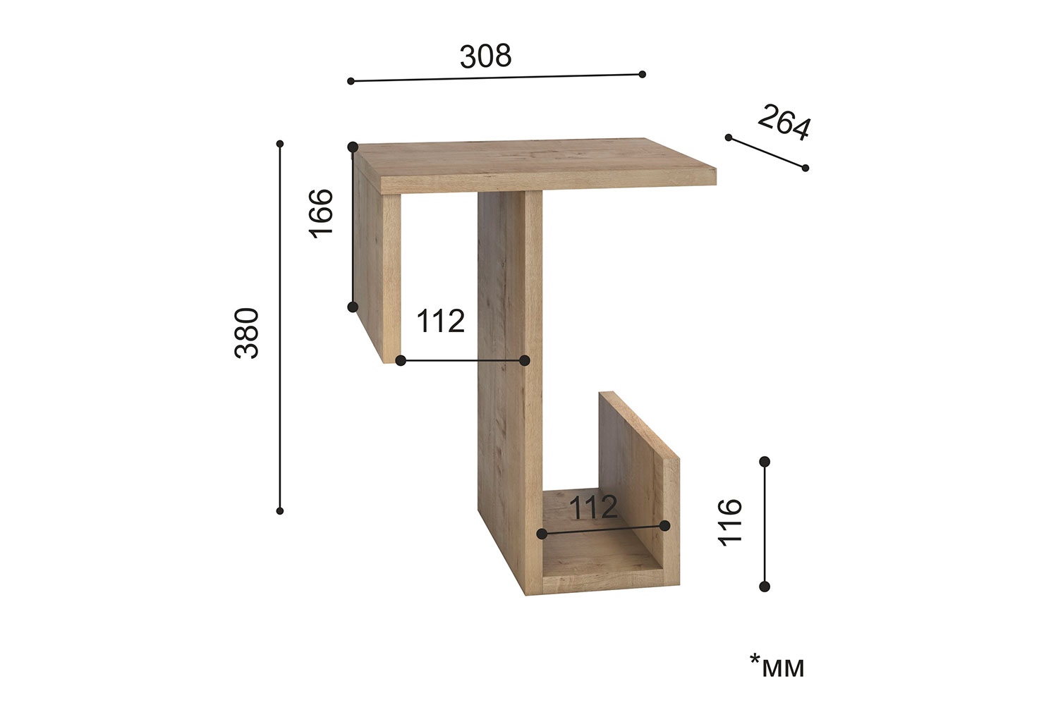 – описание: назначение для дома, цвет дуб бунратти, стиль современный, лофт, размер 38x38x26.4 см.
