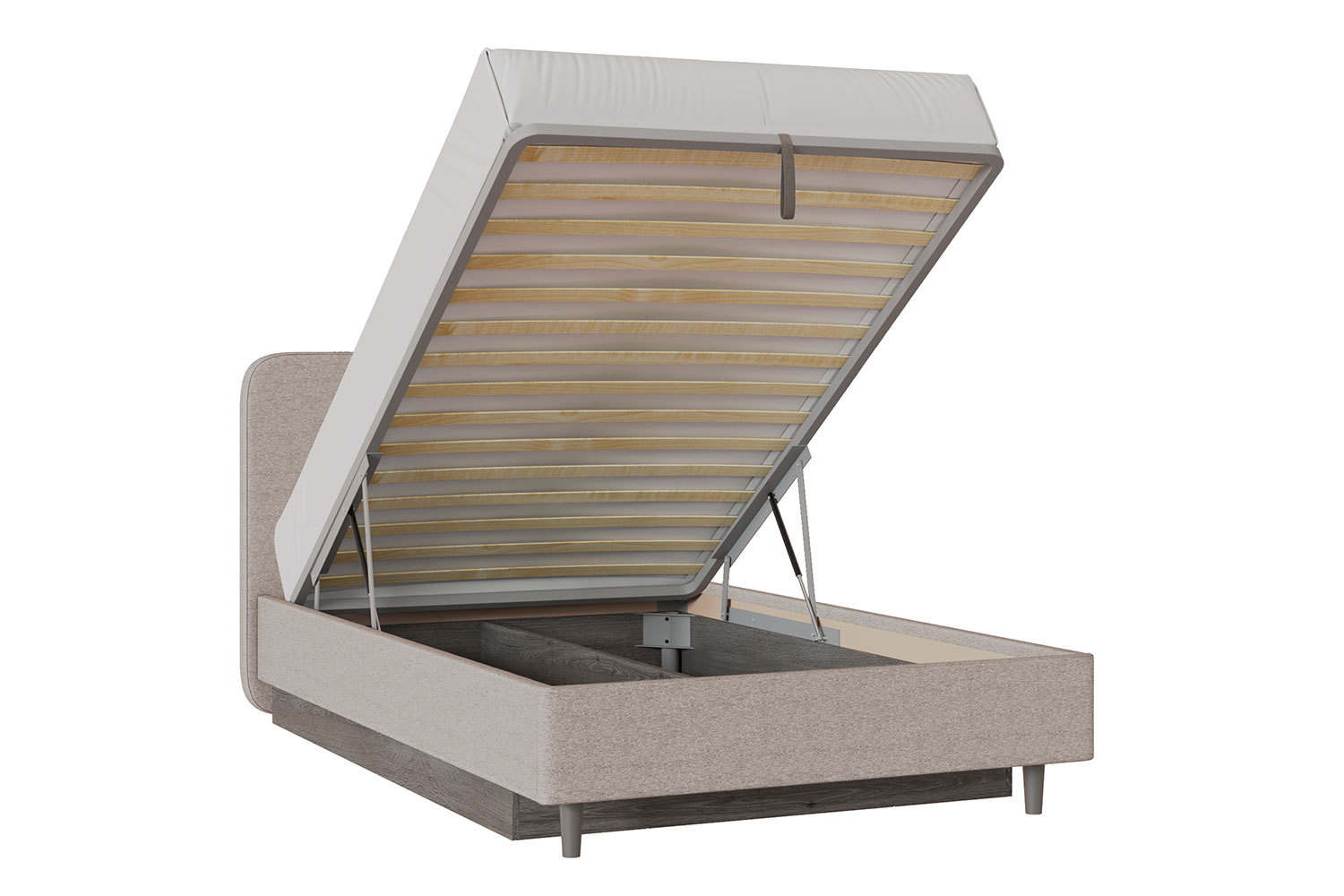 - Кровать выполнена в ткани: Ravena biscuit (бежевый) / Давос трюфель (цвет ящика для белья) / ОД14;