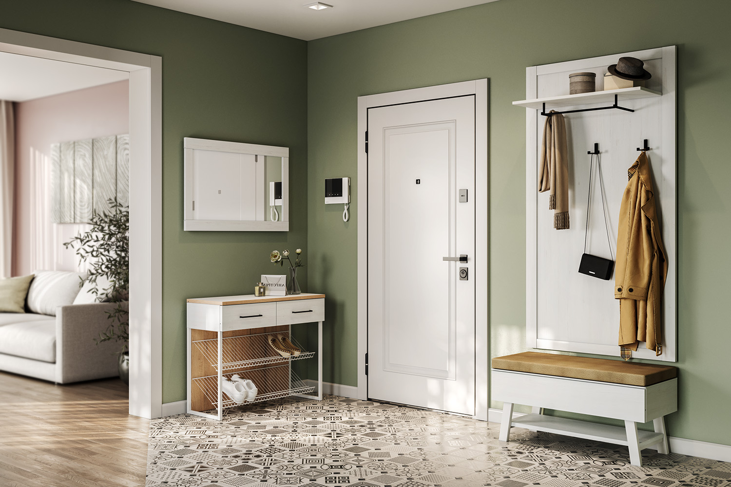 - Располагается на металлических опорах, между которыми находится щитовая панель ЛДСП с 2 сетчатым и полками «Найди» для обуви;