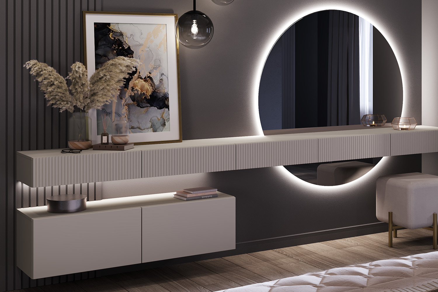 - Тумба Дольче ДЛ-343.02 навесная с тремя выдвижными ящиками и фасадами с фрезеровкой;