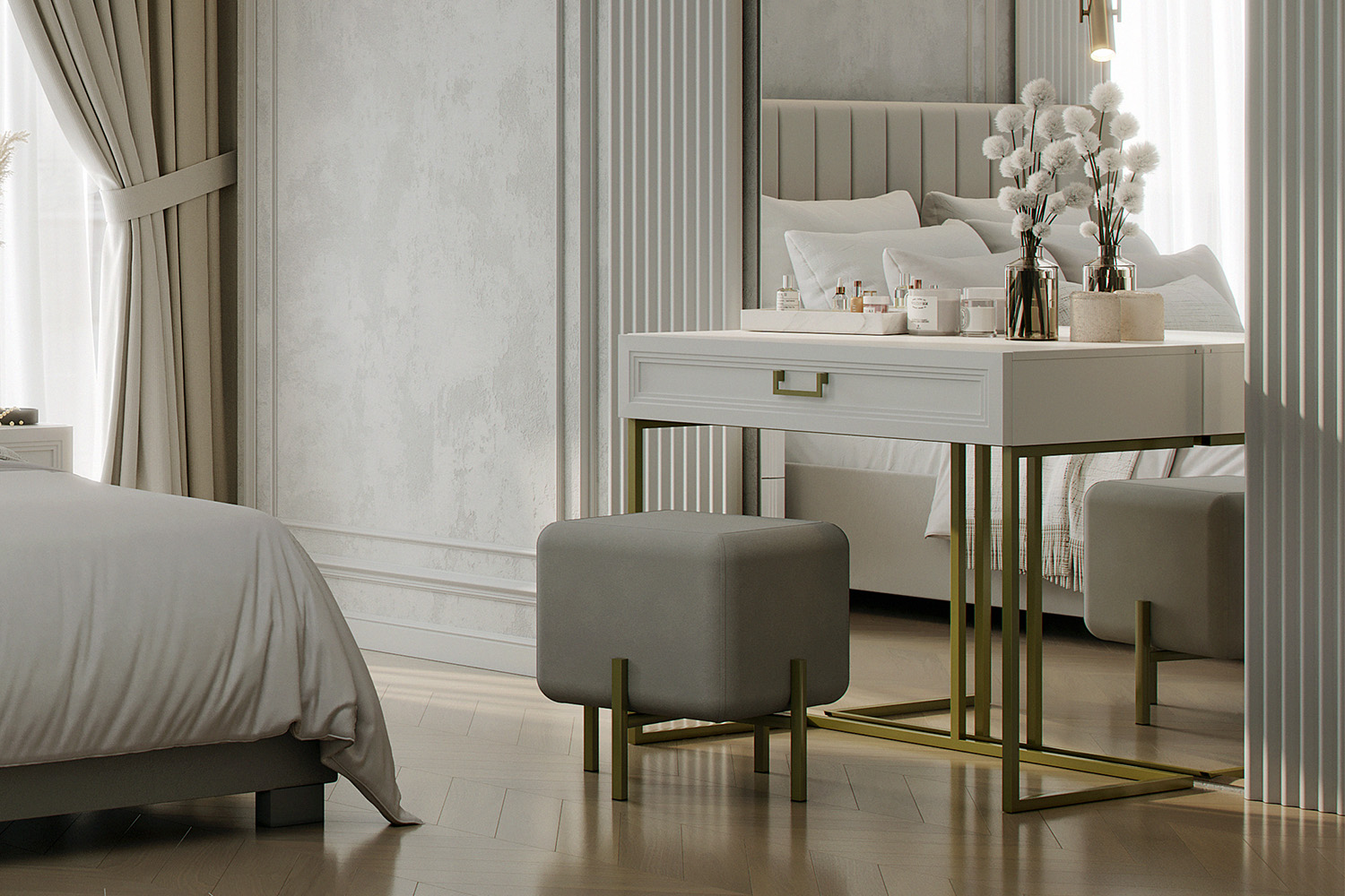 - Туалетный стол оснащен выдвижным ящиком.