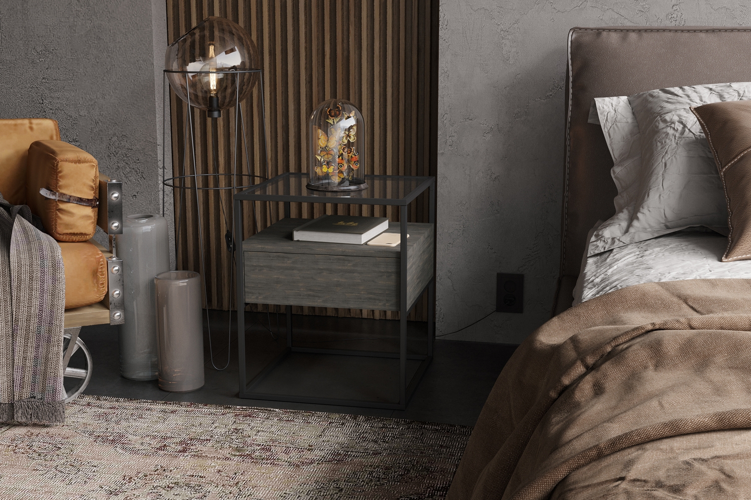 – описание: цвет интра, стиль лофт, назначение для спальни, размер 55.2x45x45 см.