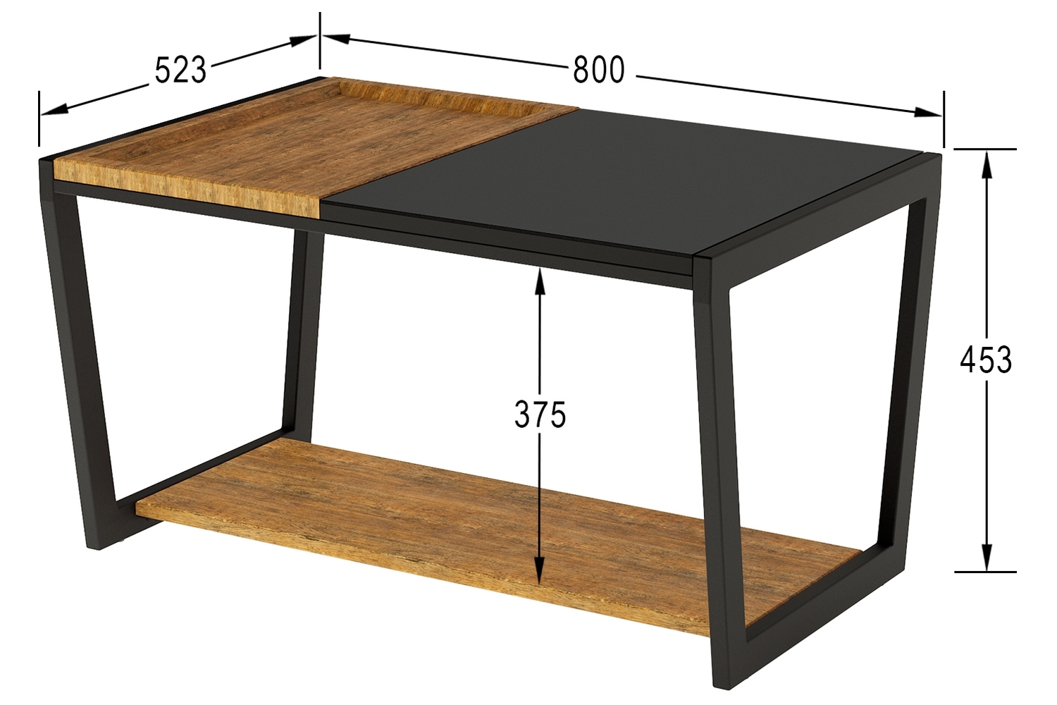 – описание: стиль лофт, назначение для дома, цвет дуб американский, черная лакобель, размер 45.3x80x52.3 см.