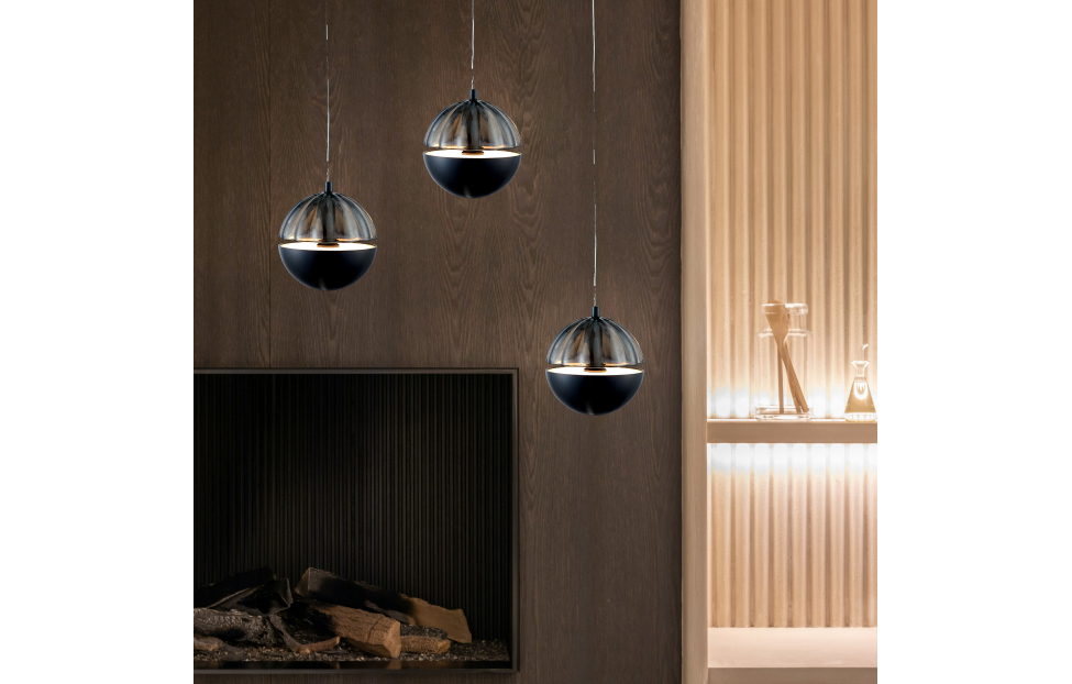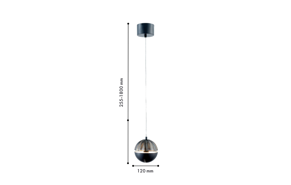 Коллекция Ballonger идеально подойдет для оформления интерьера гостиной, лестничных пролетов, кухонного островка или прикроватных зон. Особенность плафонов заключается в сочетании стеклянной рельефной полусферы с металлической полусферой, внутри которой расположен LED-модуль. Между полусферами оставлен зазор, создающий яркую полоску света. Металлическая часть плафона снизу оснащена небольшим круглым светодиодом, который добавляет изящный световой акцент. Металлический каркас в цвете черный хром и стекло плафона дымчато-серого цвета, два источника света - внутри плафона направленный поток освещает прозрачную полусферу и струится в щель между половинками сферы, в нижнюю полусферу встроен модуль LED, который дает направленный вниз поток света, регулируемая высота.