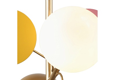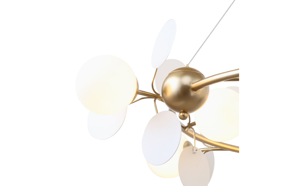 Коллекция Bliss – это гармоничное сочетание белого и золотого цветов, представляющее собой переосмысленную версию более разноцветной коллекции Multi Bliss. В основе обеих коллекций лежит одна флористическая идея, но Bliss утонченно акцентирует внимание на элегантности белого и роскоши золотого. Подойдет в интерьеры различной стилистики - от Прованса до эклектики. Металлический каркас золотого цвета, круглые стеклянные плафоны молочного цвета, декоративные круглые белые пластины, декоративные золотые шары, регулируемая высота.