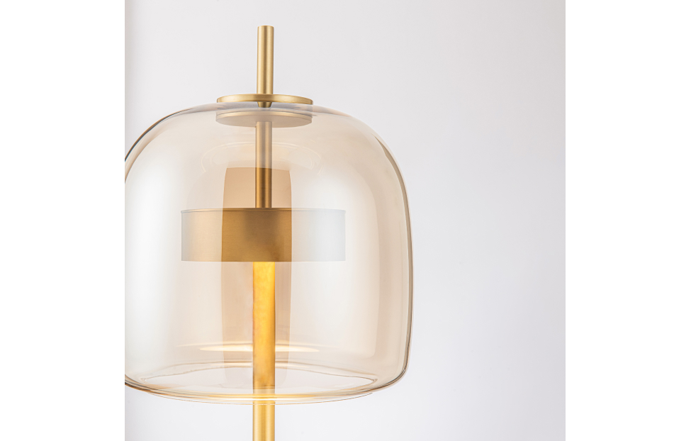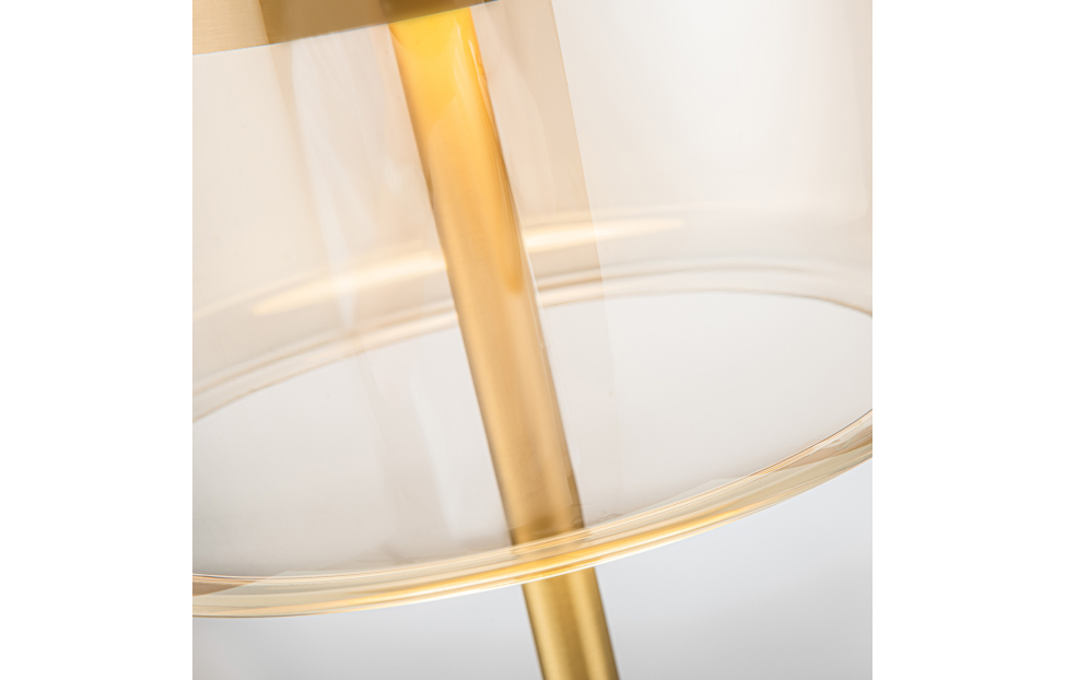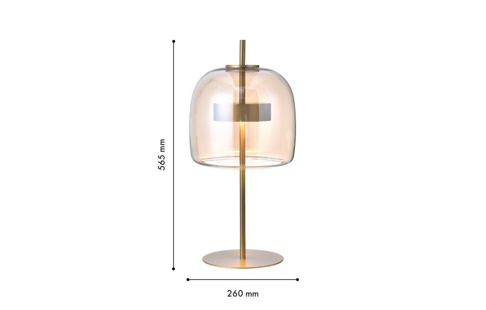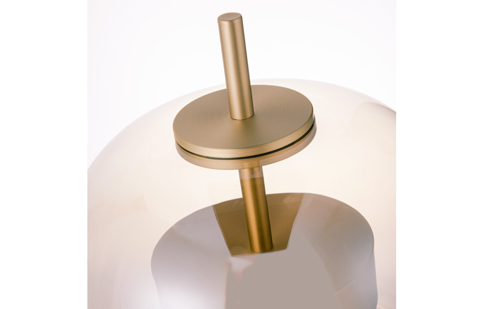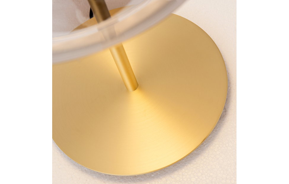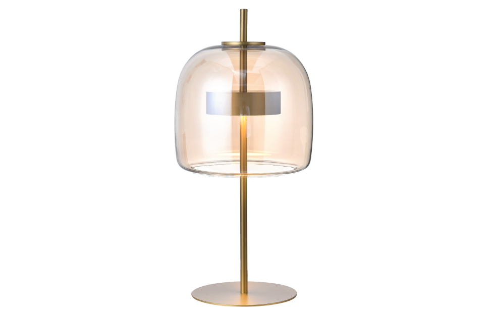 Настольная лампа с каркасом в цвете золото, плафон из янтарного выдувного стекла со встроенным модулем LED.