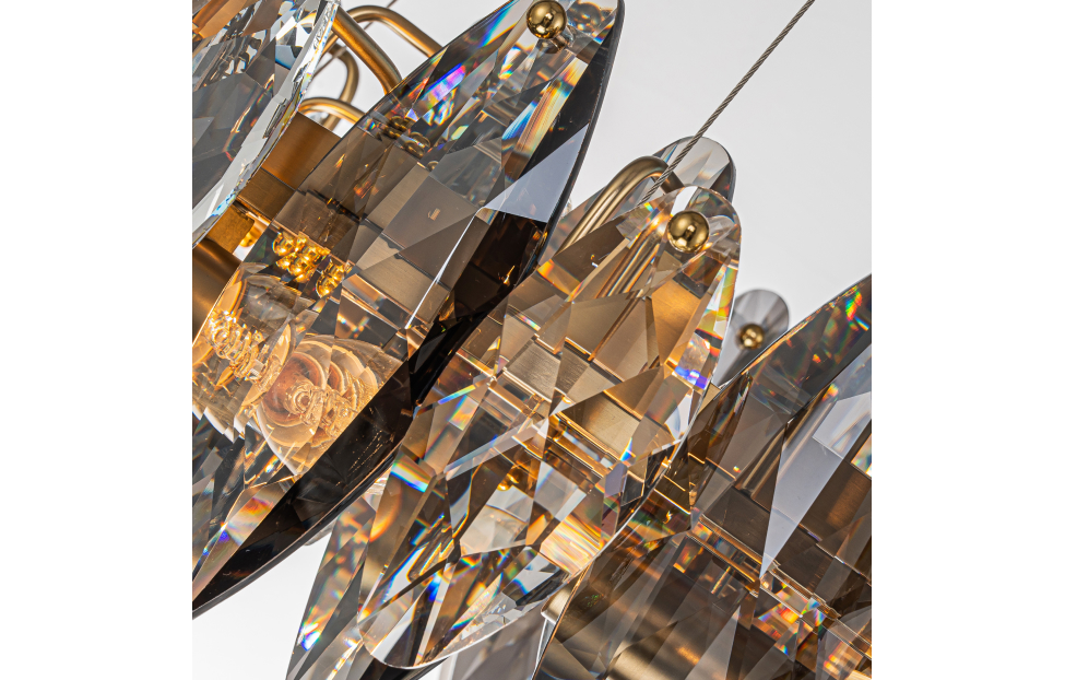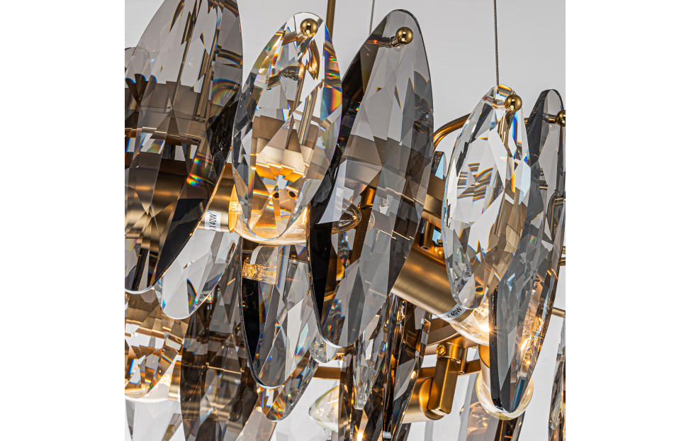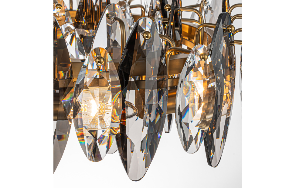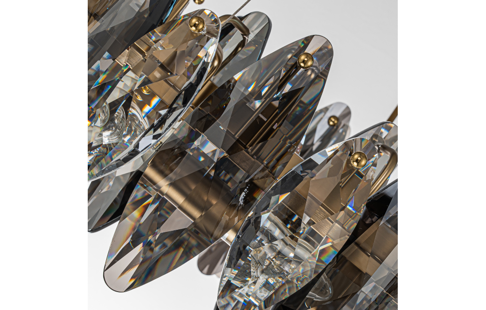 - Материал и цвет плафона: дымчато-серый/прозрачный хрусталь;