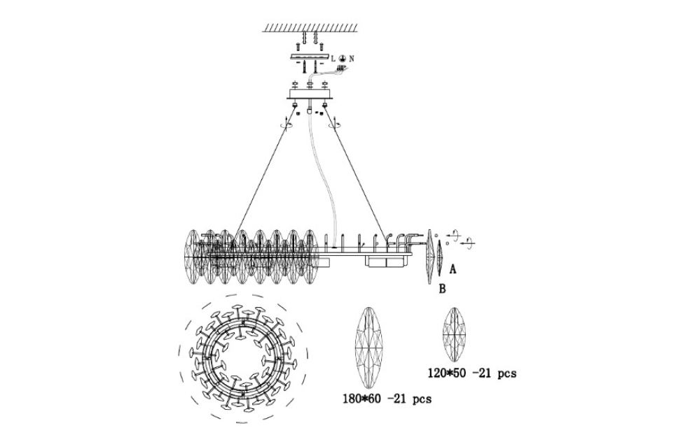 Цена на Подвесная люстра Glans D500*H210/1300 8*E14*40W от производителя , лучший выбор!