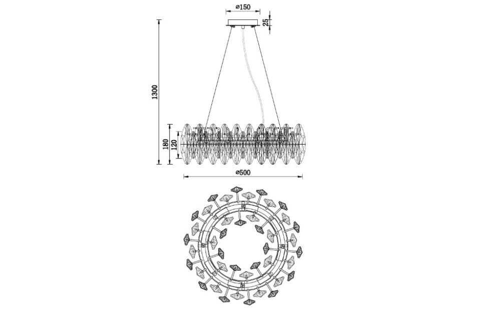 Купить Подвесную люстру Glans D500*H210/1300 8*E14*40W в интернет-магазине мебели «Ангстрем»