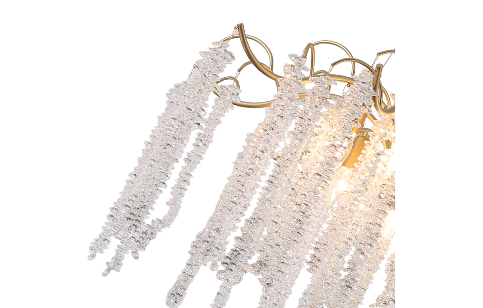 Коллекция Liana – это уникальное сочетание современной флористики и элегантности, которое олицетворяет простоту и великолепие природной формы. Рожки светильников напоминают изящные ветви золотого цвета. Они декорированы длинными подвесками из хрустальных восьмигранников высшего качества, что придает светильникам дополнительный блеск и гармонию. Коллекция Liana идеально подходит для современных интерьеров, добавляя им оригинальности и изысканности. Металлический каркас в цвете матовое золото, декор из хрусталя, сменная лампа, регулируемая высота.