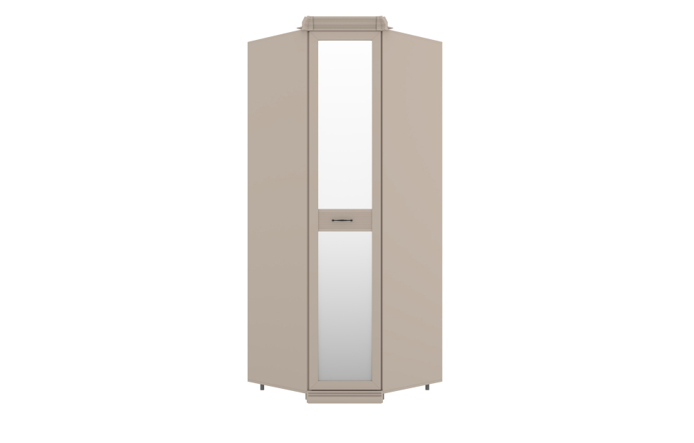 - Шкаф угловой с зеркальным фасадом, укомплектованный полками, планкой и штангой для одежды;