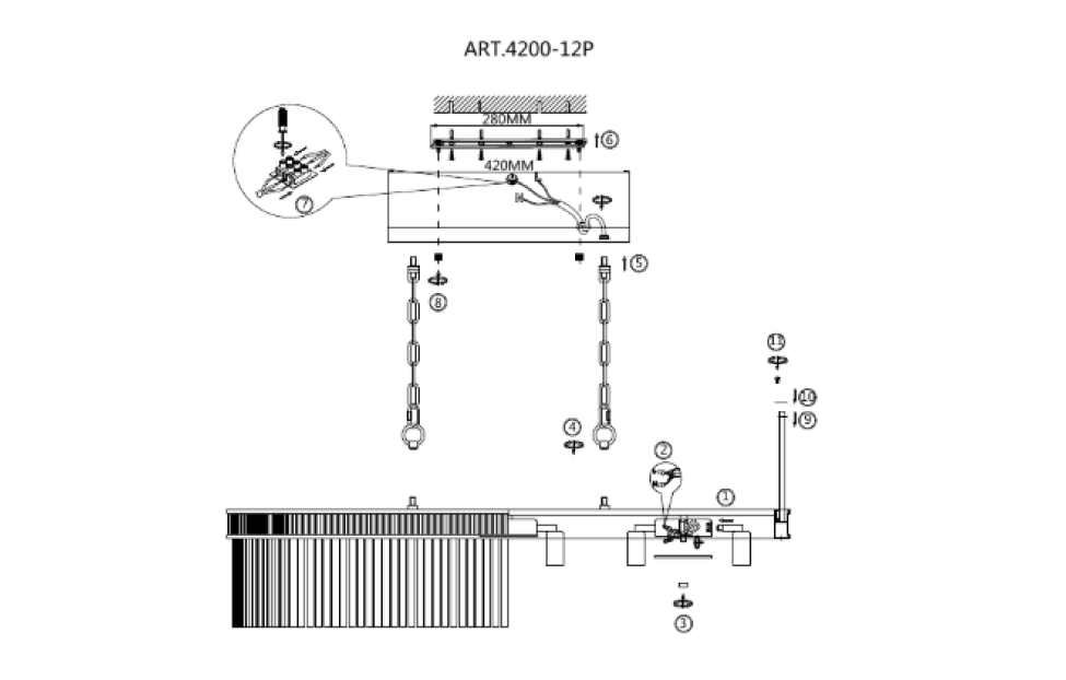Купить Подвесную люстру Turris (никель) L1000*W320*H380/1220 12*E14*40W в интернет-магазине мебели «Ангстрем»
