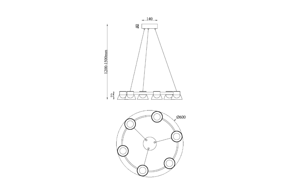 Купить Подвесную люстру Twix D600*H1200/1500 6*LED*5W в интернет-магазине мебели «Ангстрем»